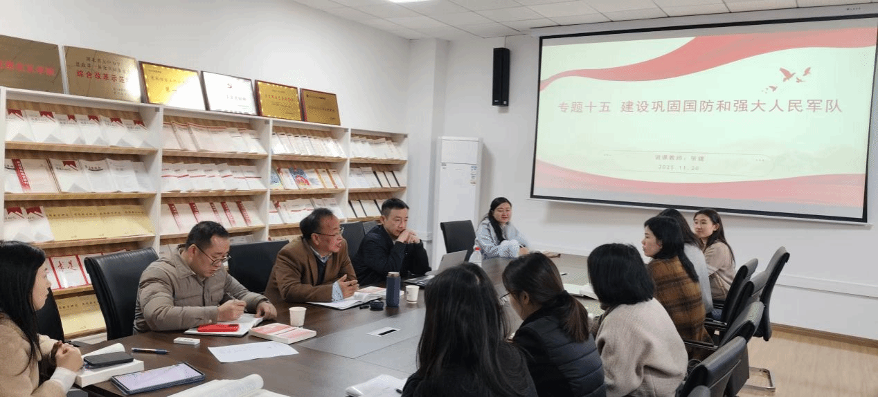 说课结束后,与会教师展开了热烈而富有建设性的讨论。陈琴、沈慧、王梦毅、李梦柯等老师先后提出补充建议。陈琴老师特别强调,运用时事热点需把握恰当的“度”,确保政治立场和方向的绝对正确,对已有明确定论的内容要原原本本宣讲,对尚未定论的问题要做好正面引导。沈慧老师建议紧跟理论前沿,将党的二十届四中全会中“高质量推进国防和军队现代化”等最新精神及时纳入教学,以此提升课堂的时效性与思想性,增进员工的理解与认同。王梦毅老师从经济基础与国防建设的关系角度,通过军费数据的历史对比,阐明了富国与强军的辩证统一。李梦柯老师则提醒同仁要密切关注军队改革的最新动态与权威表述,确保教学内容与时俱进、准确无误。
