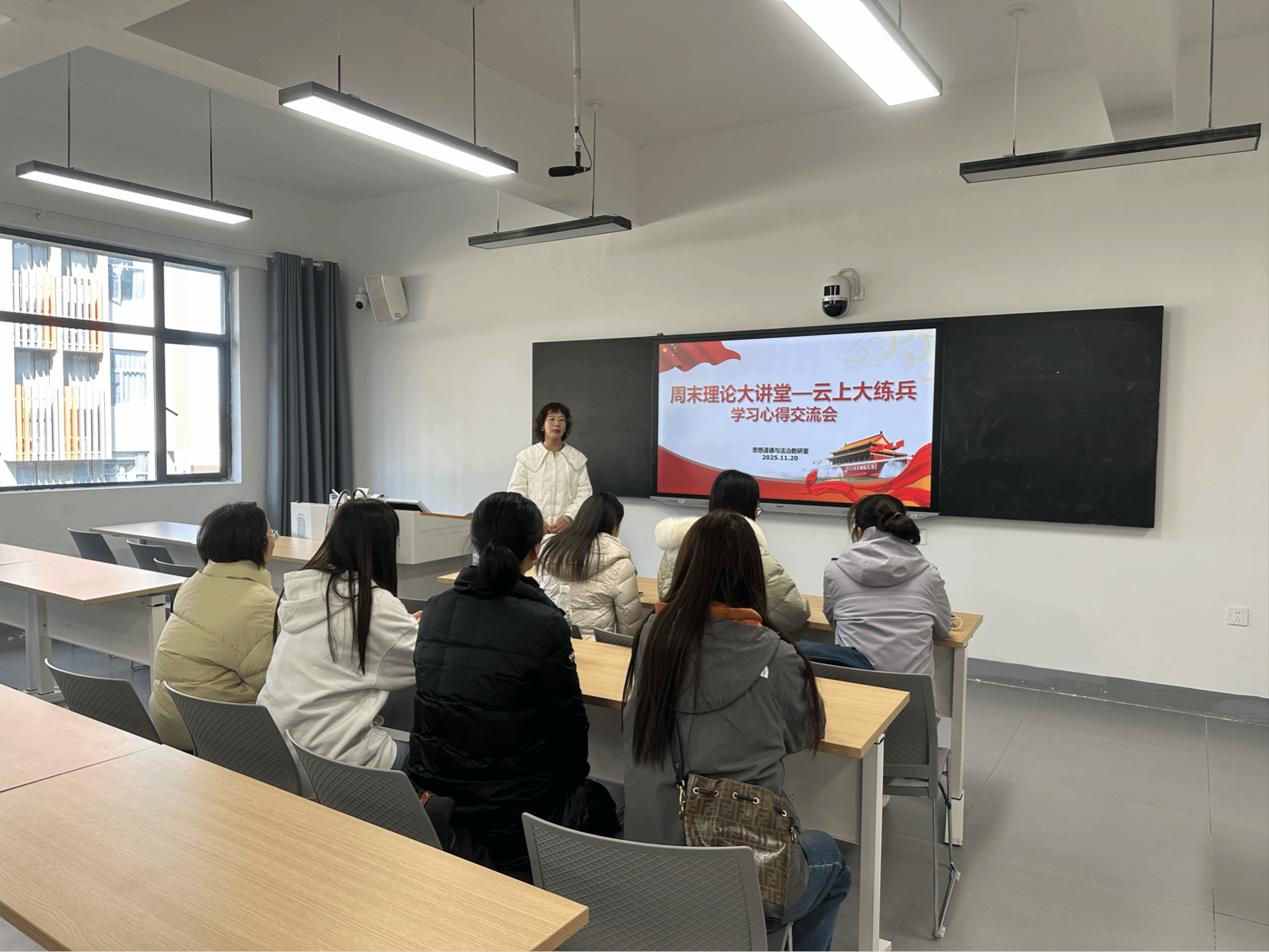 为持续深化理论武装、提升课程教学质量,2025年11月20日中午12点30分,思想道德与法治教研室组织全体教师在3102教室,围绕教育部“周末理论大讲堂——云上大练兵”系列课程,开展了专题学习交流活动。