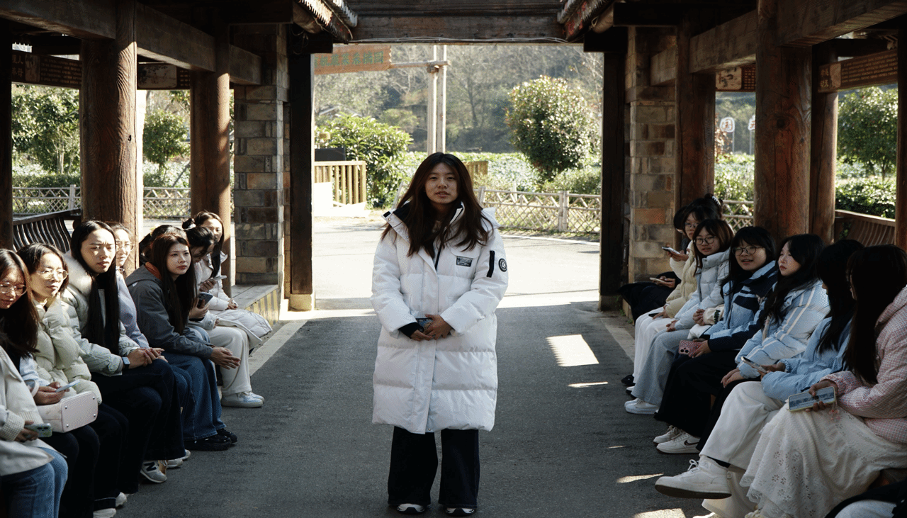 出发途中,带队老师徐小莉在大巴车上开设“移动课堂”,以“贫困村的蝶变之路”为题,系统介绍了金岭村“党建引领、产业造血、文化赋能”的发展主线,并明确了文化传承、产业创新、乡风建设、基层治理四个调研小组的任务,引导同学们带着“乡村如何实现自我造血”的思考开启本次实践之旅。