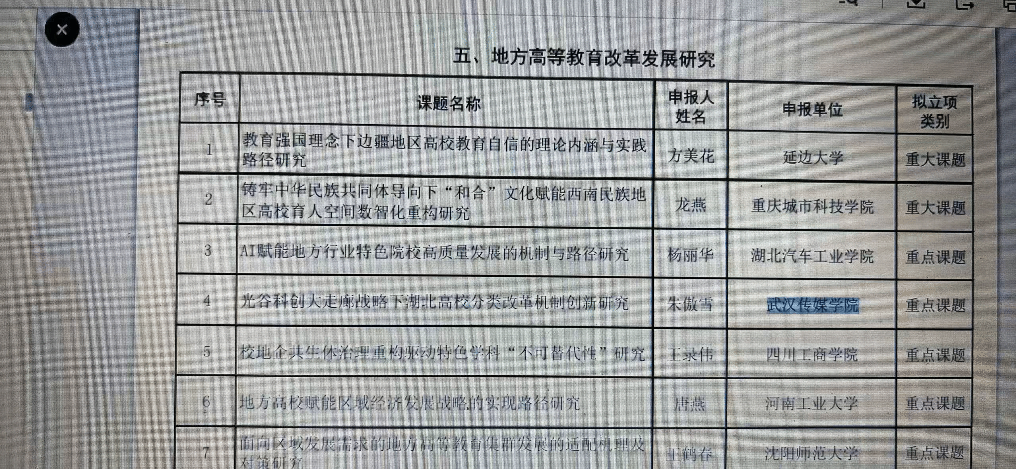 近日,中国高等教育学会“2025年度高等教育科学研究规划课题”拟立项名单公示,bevictor1946韦德官网朱傲雪教师申报的《光谷科创大走廊战略下湖北高校分类改革机制创新研究》成功获批重点课题。