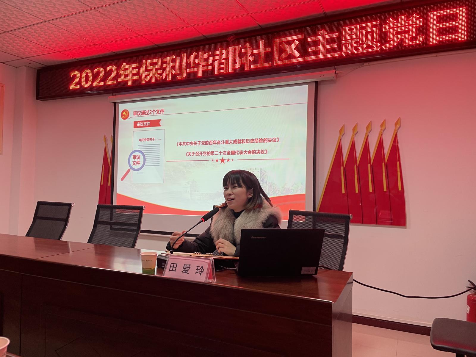 为深入学习贯彻党的十九届六中全会精神,扎实推进党史学习教育走深走实走心,2月17日,公司思想政治理论课部田爱玲、周小英两位老师走进保利华都社区,开展学习党的十九届六中全会精神专题讲座,保利华都社区40余名党员干部参加了此次宣讲活动。