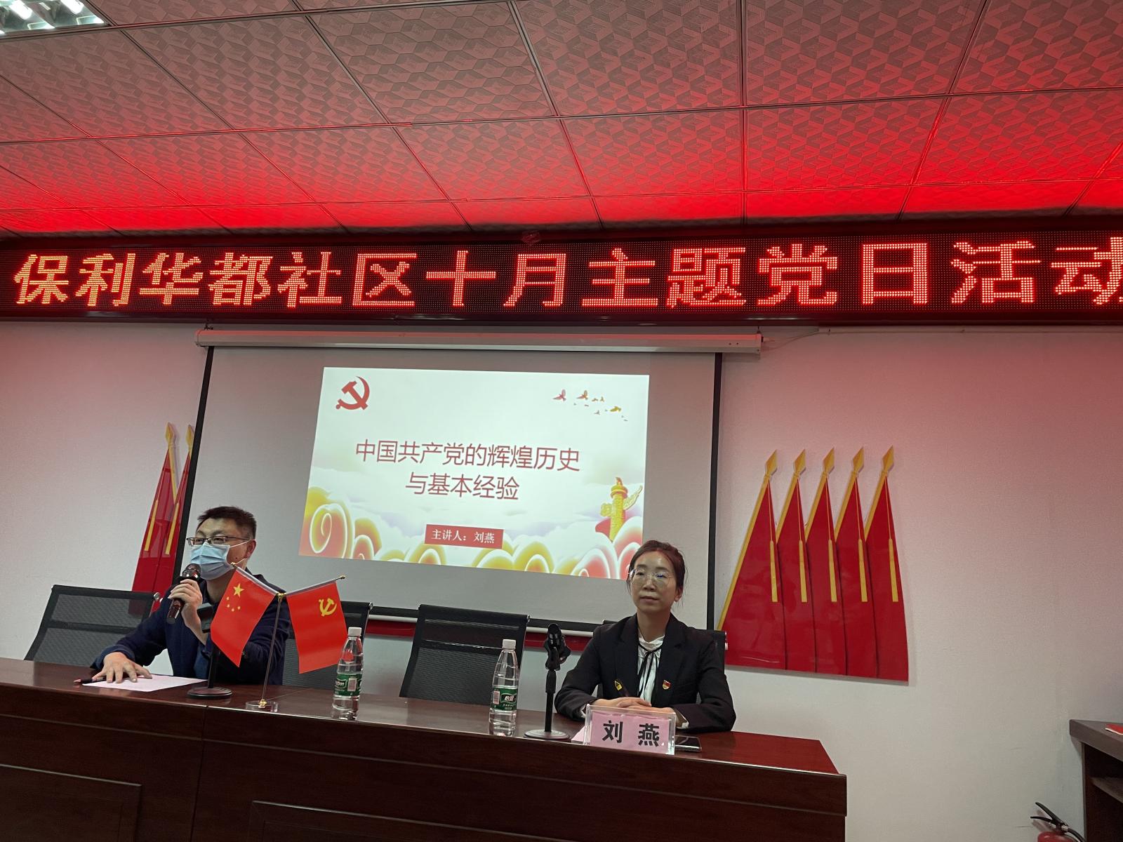 为深入学习贯彻习近平总书记在党史学习教育动员大会上的重要讲话精神和“七一”重要讲话精神,扎实推进党史学习教育走深走实走心,10月17日,公司思想政治理论课部刘燕、周小英两位老师走进保利华都社区,开展党史专题讲座。保利华都社区40余名党员干部参加了此次党史宣讲活动。