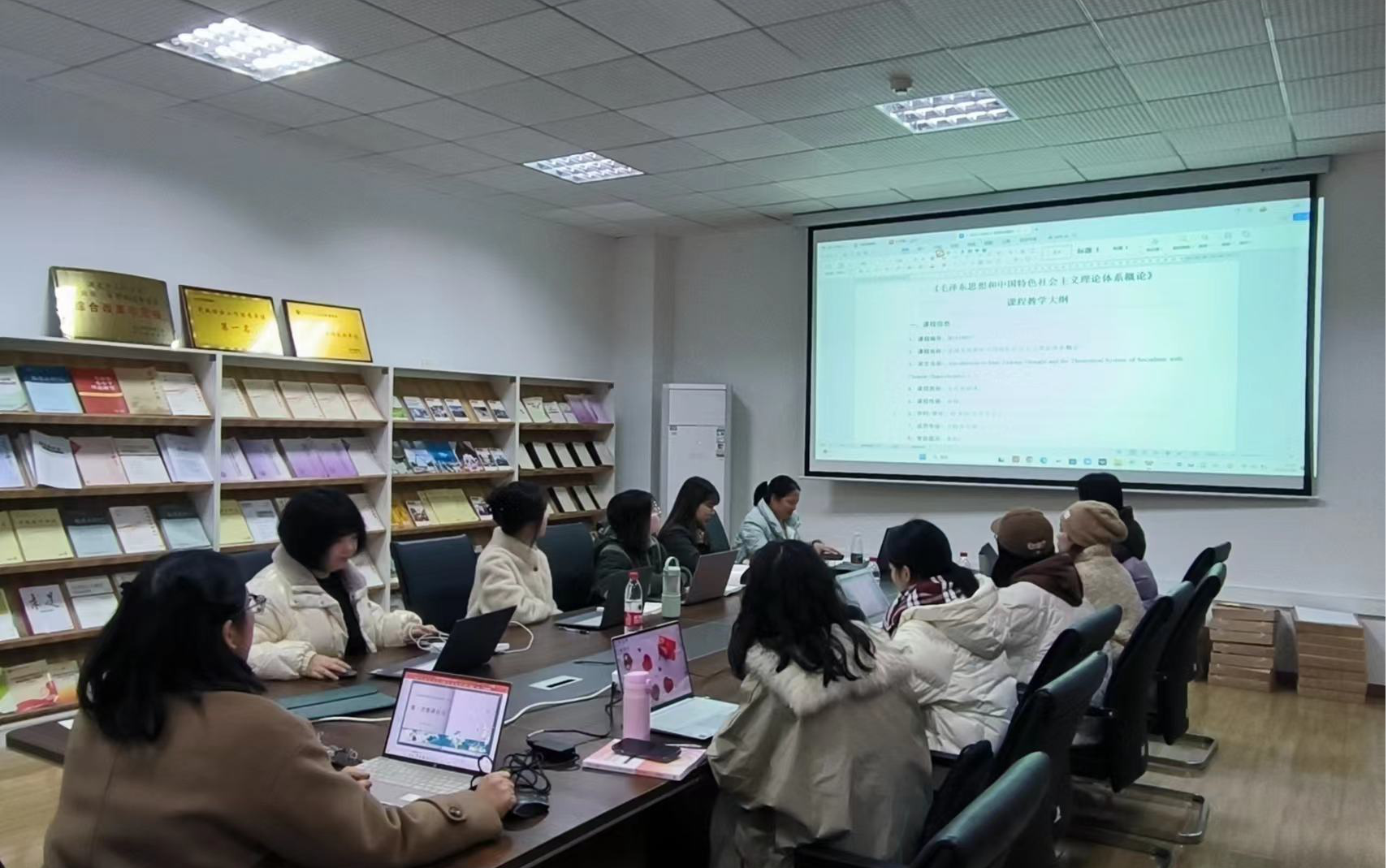 龙腾盛世迎新春,同心聚力展宏图。为进一步提升“毛泽东思想和中国特色社会主义理论体系概论”(以下简称“毛中特”)课程公司产品质量,引领员工积极向上的精神风貌,“毛中特”教研室于2024年3月2日在8201会议室召开新学期第一次教研会议。本次会议由“毛中特”教研室主任朱雁主持,教研室全体教师参加。