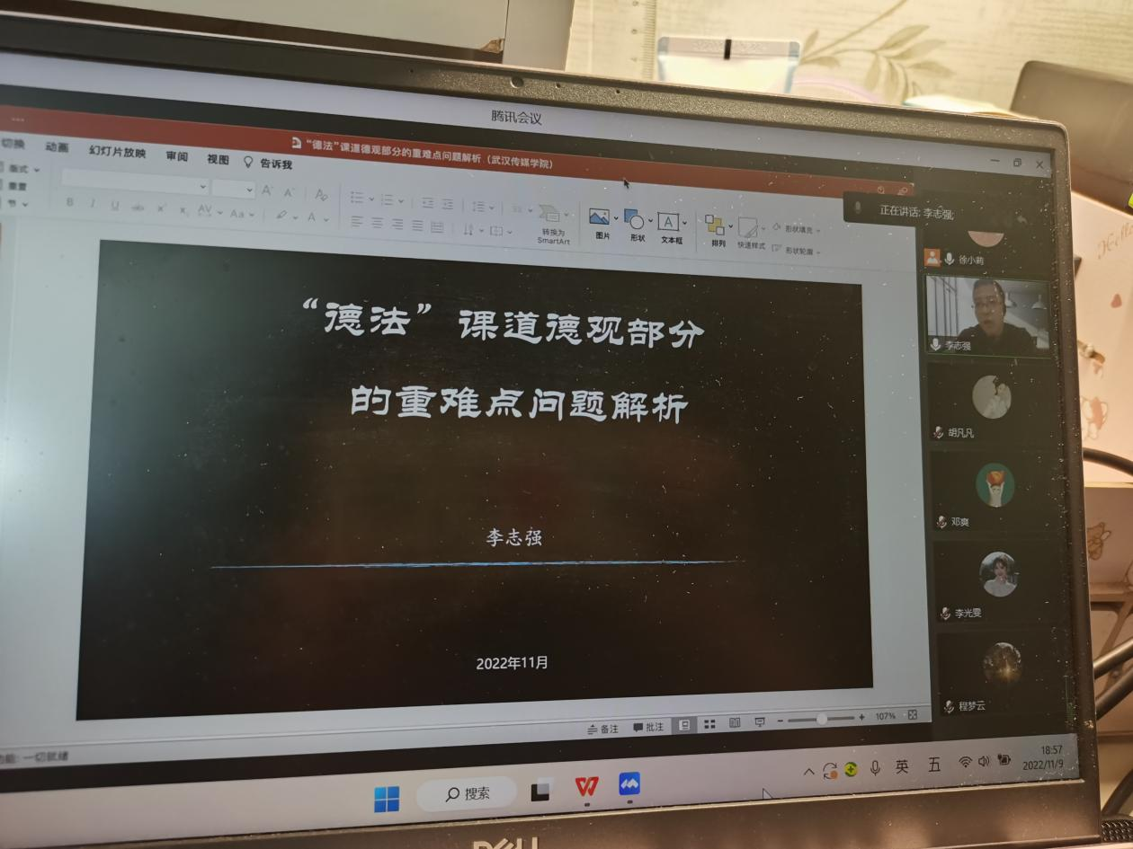 为进一步提高公司思想道德与法治课教师教学能力与水平,11月9日晚19:00,公司思想道德与法治教研教研室特邀中国政法大学bevictor1946韦德官网李志强教授来公司进行教学专题讲座,讲座依托腾讯会议平台进行,全体教研室老师参加,会议由徐小莉老师持。